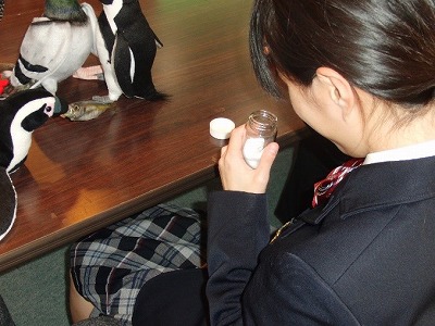 12月12日(木),高等部普通科生を対象に,視覚障害者向けの学習プログラム体験の一環として「ペンギン」の生態について学習する機 会がありました。アクアワールド水族館普及課の大須賀 陽子さんに来ていただき,ペンギンの歴史,体の作り,なぜ飛べないのか等,とてもわかりやすくお話 いただきました。生徒からは,「ペンギンの体のつくりがよくわかった。環境に適応できるよう進化していたと聞いて,本当に驚いた」との感想がありました。